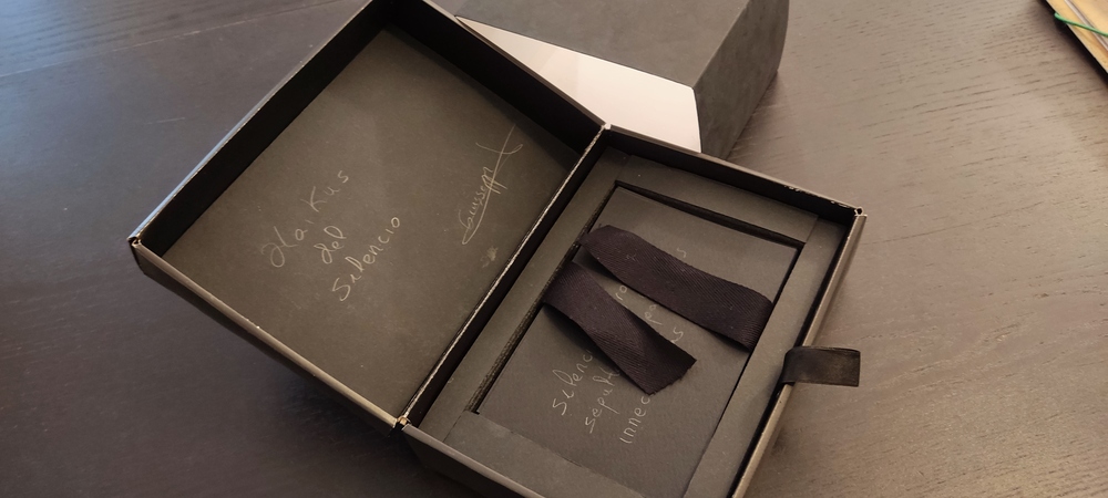 Haikus del silencio es un libro objetual de 28 haikus manuscritos escritos con lápiz negro sobre papel verjurado negro, todos conteniendo la palabra silencio.