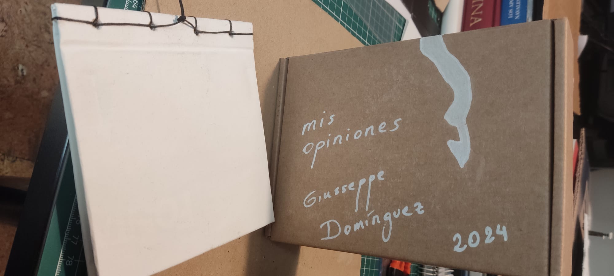 Mis opiniones es un libro objeto de escritura en blanco sobre blanco listando unas 50 de mis opiniones más insignificantes.
