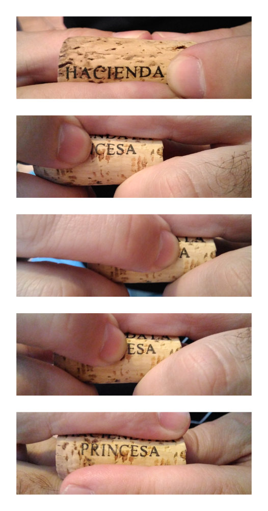 Micropoema compuesto con un corcho de una botella de vino de una bodega manchega. Mínimo y efímero (como poema objetual) hasta el límite.