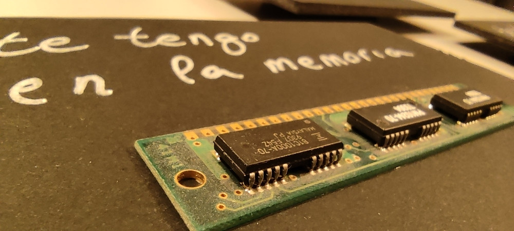 Te tengo en la memoria es una serie de 4 piezas numerada de cartón foam negro de 5mm con tarjeta de memoria 1Mb. En todas ellas figura la frase "Te tengo en la memoria".