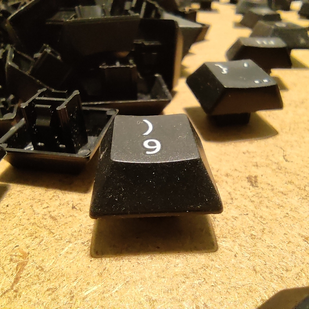 Teclado es una serie de fotografías de poemas objetuales realizados utilizando las teclas extraídas de uno de ellos.