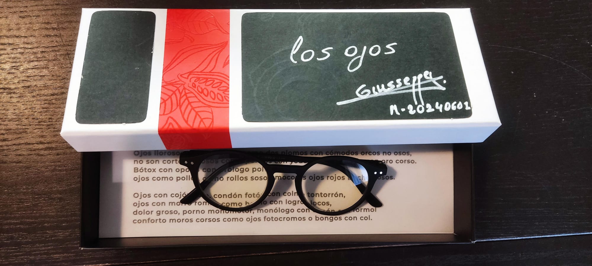 Los Ojos es un poema objetual realizado a partir de un Lipograma fuerte y unas gafas.